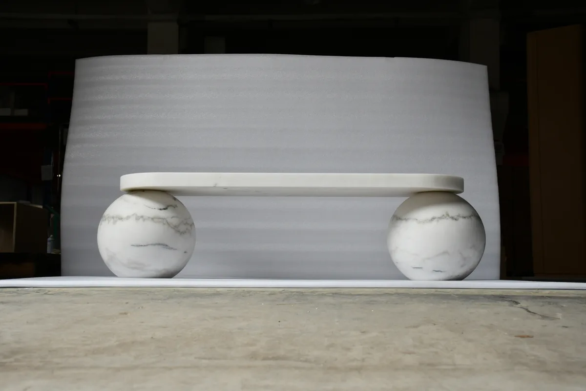 A substantial 150cm stone coffee table with clean rectangular lines.